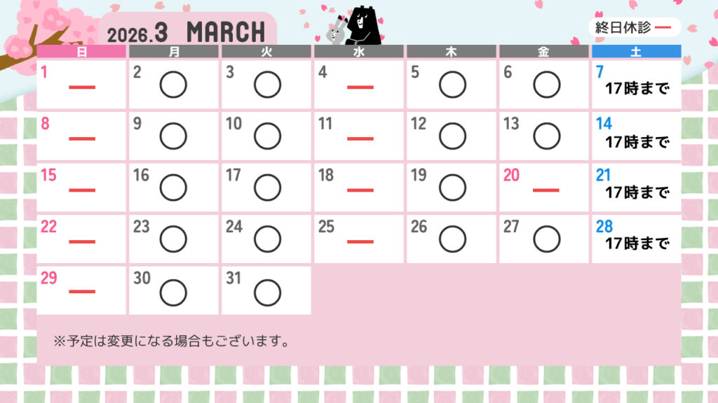 3月の診療カレンダー